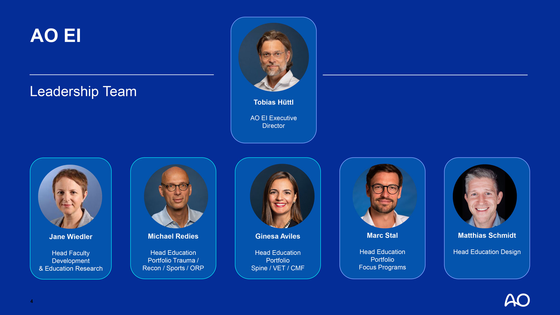 The AO Education Institute is the AO's center of excellence for designing curricula, assessment and evaluation of educational outcomes, faculty development, medical education research, and the creation of educational tools and media.