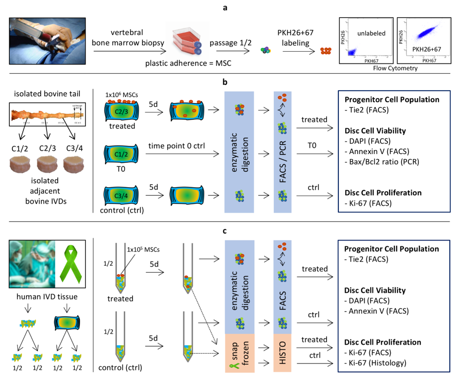 To investigate the effect of MSC homing on the IVD progenitor cell population, the IVD cell survival and their proliferative response.