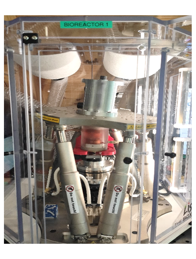 We have established whole IVD organ culture systems with the ability to maintain entire discs for several weeks under controlled nutrient and mechanical loading conditions. Our unique multiaxial bioreactors enable us to apply load and motion in six degrees of freedom onto the spinal segment, reproducing physiological conditions.