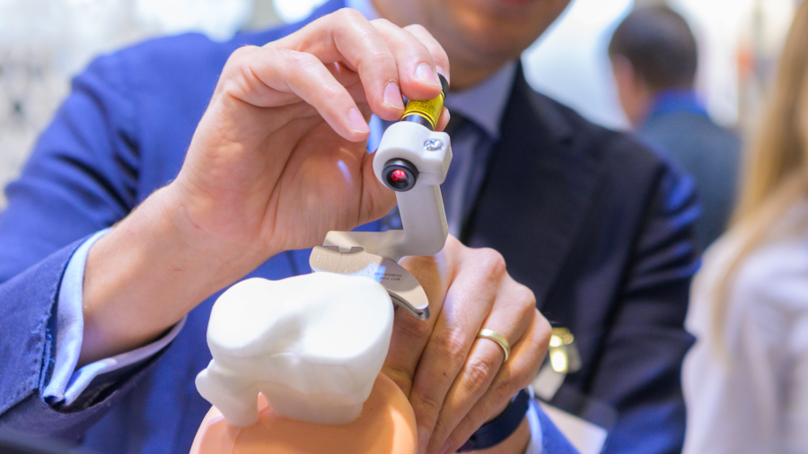 DKOU 2019 participants and delegates stopped at the AO booth (hall 2.2, booth 20) to explore the AO Recon Skills Lab, where one station, on the alignment of the tibial cut, was showcased by Philipp von Roth.
