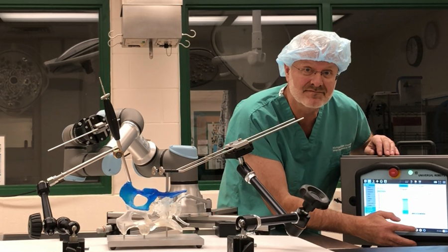 Other members of the team include Mark Cosgrove, dean of Lansing Community College and Peter Richter, MD, from Ulm University in Germany. The team is collaborating on a comprehensive navigation system with six-axis robotic arms to assist in fracture reduction and fixation. Such a system could overcome the limitations of currently available navigation systems as well as manual reduction and fixation of orthopedic injuries under fluoroscopic guidance.