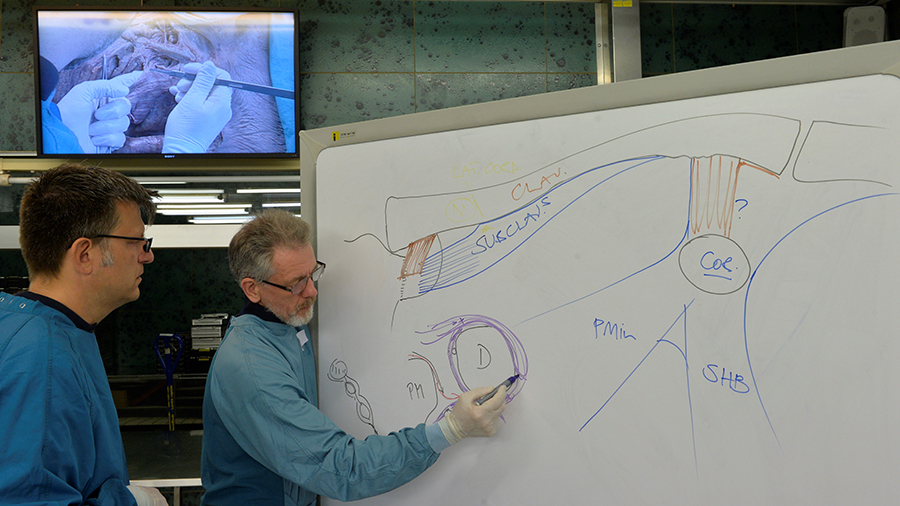 Lambert, who has 35 years of clinical experience, 100-plus peer-reviewed publications, and 20 book chapters, including a revision of Gray’s Anatomy chapters on the shoulder girdle and shoulder joint, famously uses drawings to illustrate biomechanical concepts and fracture fixation principles when he teaches, and Varga immediately grasped their educational potential.