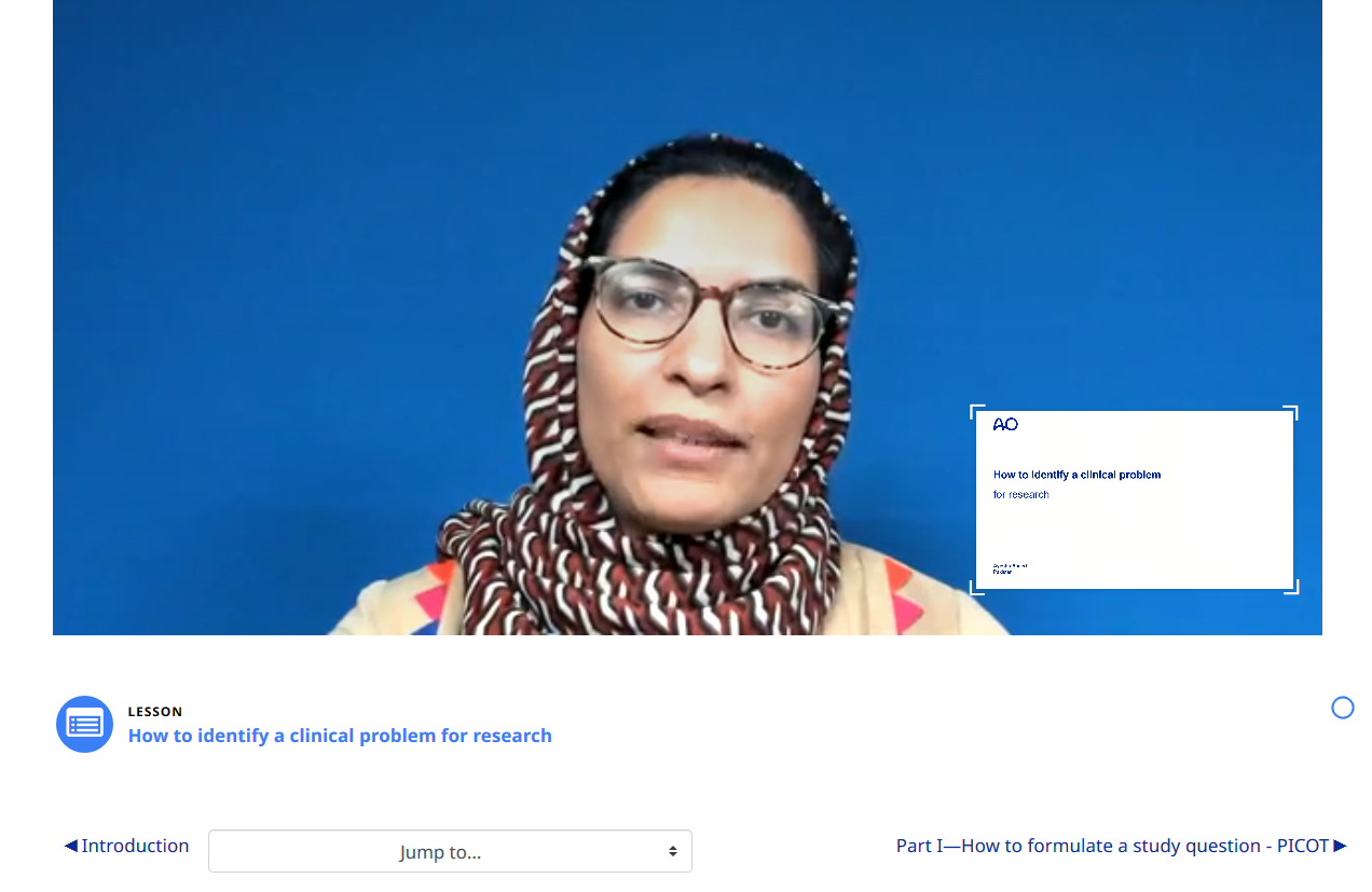 From how to formulate a clinical research question to practicing skills related to critical literature review, working with a statistician, and navigating AO PEER, the course topics are aimed at making participants’ research projects successful. Additionally, learners have access to an interactive forum for exchanging thoughts and challenges.