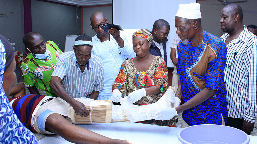 Traditional bonesetters learn splinting techniques during the AO Alliance course on Basic Principles of Fracture Treatment in Wa, Ghana