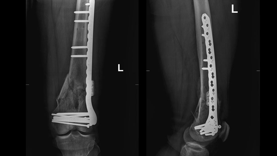 Patient convalescing following first-in-human AO Fracture Monitor application