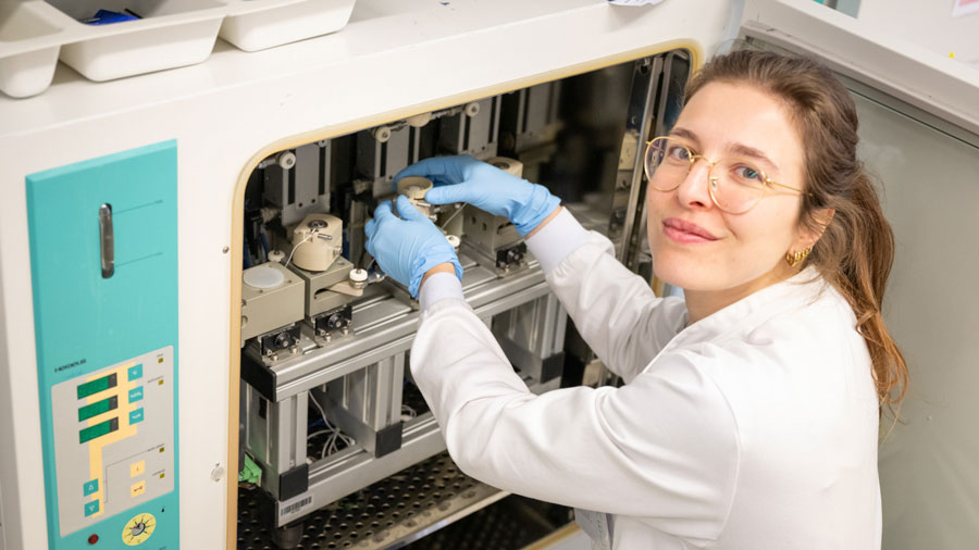 Mecchi is in her third year of a project investigating how damaged cartilage tissue can regenerate itself. The body cannot heal cartilage in the knees, hips, and elbows as quickly as it heals other tissues, such as skin or bones, because cartilage lacks blood vessels. This makes it difficult for cells to reach the area to initiate regeneration. However, researchers have already discovered that movement and mechanical forces can activate a specialized protein in the cells, stimulating cartilage tissue regeneration. Mecchi is currently focusing on questions such as: What type of movement produces the best results? Or is it a combination of forces acting on the knee, for example? And how often and for how long should these movements be performed each day?