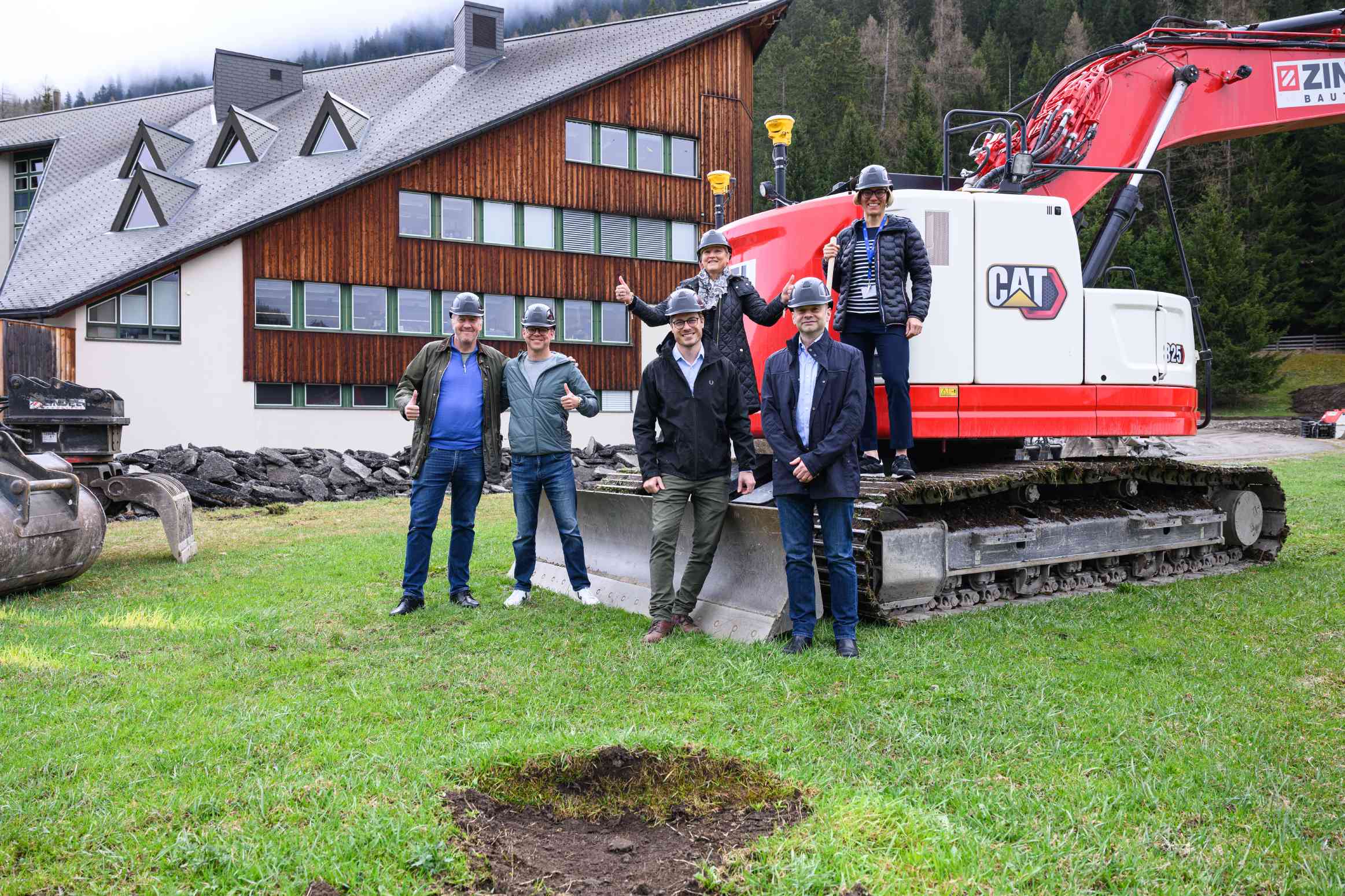 Today, the sun shone down on the building site where the AO’s Science Circle will rise over the next two years in Davos, Switzerland. Representatives gathered from the AO’s leadership, Gemeinde Davos, and architecture firm Architektur 41; they put on hard hats, and, with shovels in hand, they took the first ceremonial scoops of earth to break ground on this significant building project.