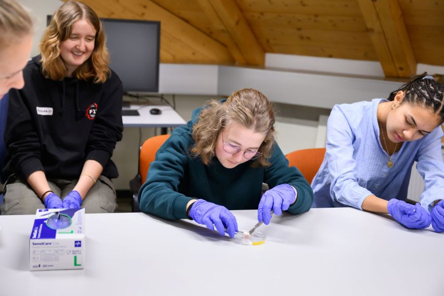The presentation was followed by a tour of the AO Center, during which the students were able to take a look at the various work areas and laboratories. Together with Marcia Mürner, a PhD student at ARI, those who felt confident enough were able to try their hand at dissecting intervertebral discs from cow tails to get an idea of their different components. The cow tails are slaughterhouse leftovers and are used at the ARI to research minimally invasive treatment options for disc degeneration. Mürner also willingly shared insights into her career path to date and encouraged those interested in a career in research to contact her and attend a taster day.
